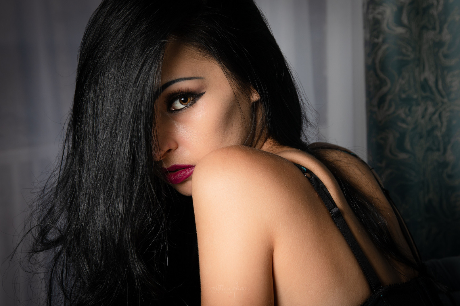 I have a long black hair, avarage kg and 1.65 cm